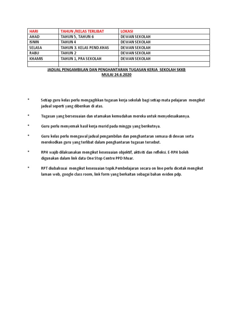 Jadual Tugasan Kerja Sekolah Pdf