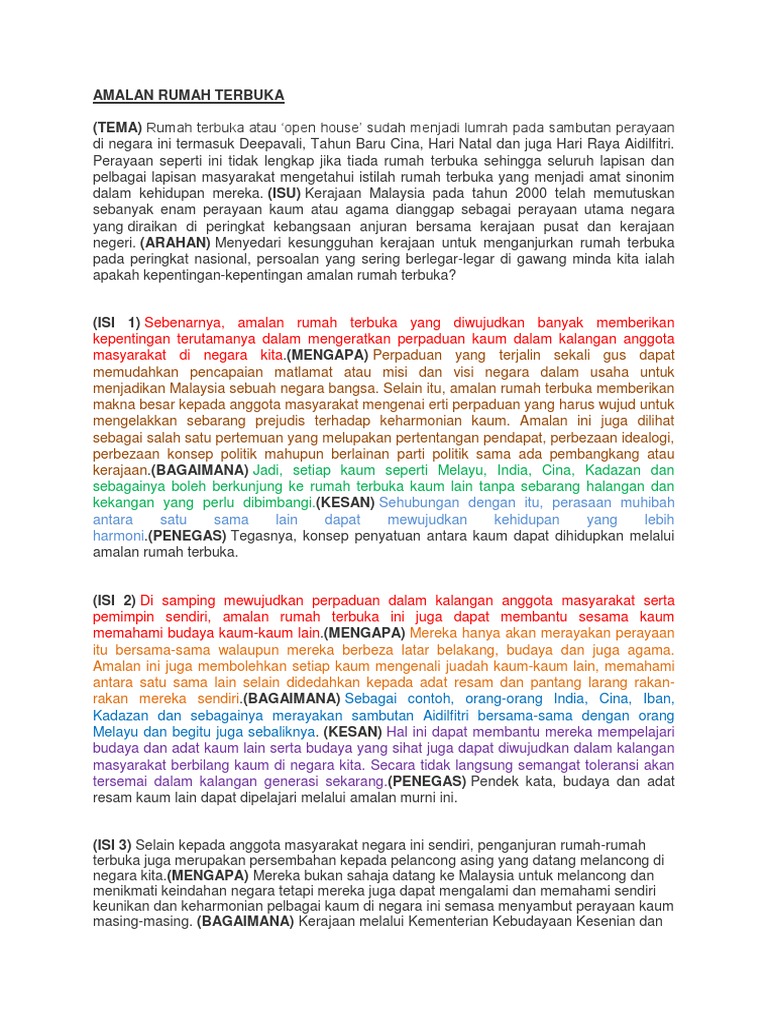 Contoh Karangan Spm Kepentingan Amalan Rumah Terbuka